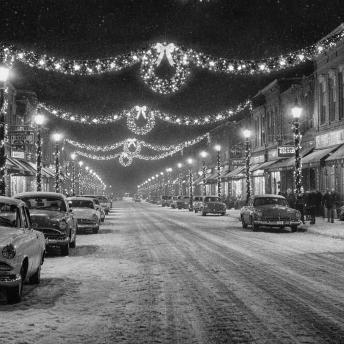 Christmas was a magical time in the little village of Frederic, Wisconsin during the mid 1950’s. Main streets were thriving in towns across America without the competition of yet to come powerful enterprises like Walmart and Target, whose goal was to be the only store for miles around, shutting down main streets left and right. In the 1950’s, there was still room for small family businesses and family farms to flourish - where you could not only survive but grow and actually make a profit.